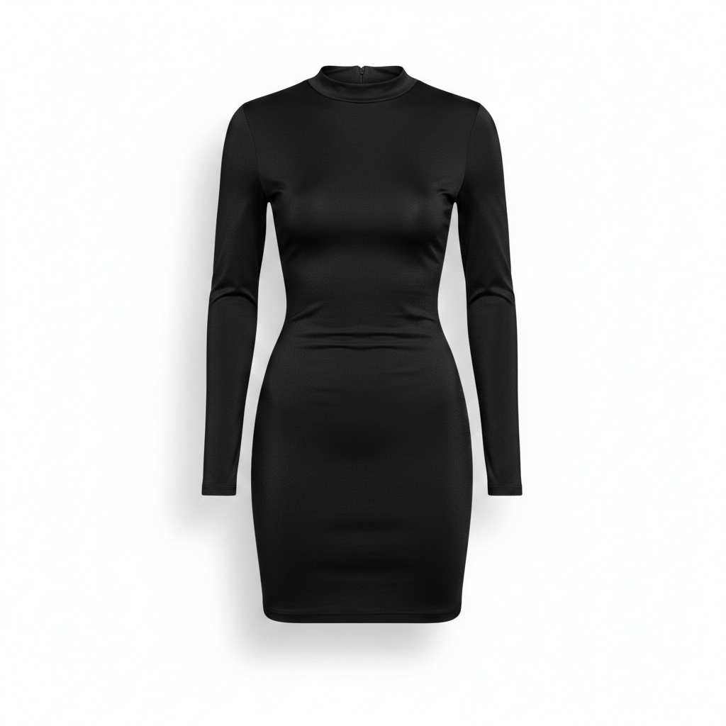 Ta dopasowana czarna sukienka o kroju bodycon to absolutny niezbędnik w każdej kobiecej garderobie. Długie rękawy oraz elegancka stójka nadają jej nowoczesnego charakteru, który świetnie sprawdzi się zarówno w biurze, jak i na wieczornym wyjściu. Elastyczny materiał idealnie podkreśla atuty sylwetki, zapewniając przy tym pełną swobodę ruchów i komfort noszenia przez cały dzień. W zależności od dodatków możesz stworzyć z nią minimalistyczny, surowy look lub postawić na wyrazistą, odważną stylizację.